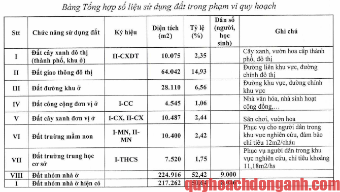 + Đất nhóm nhà ở hiện có: có tổng diện tích khoảng 217.262m2, cụ thể: