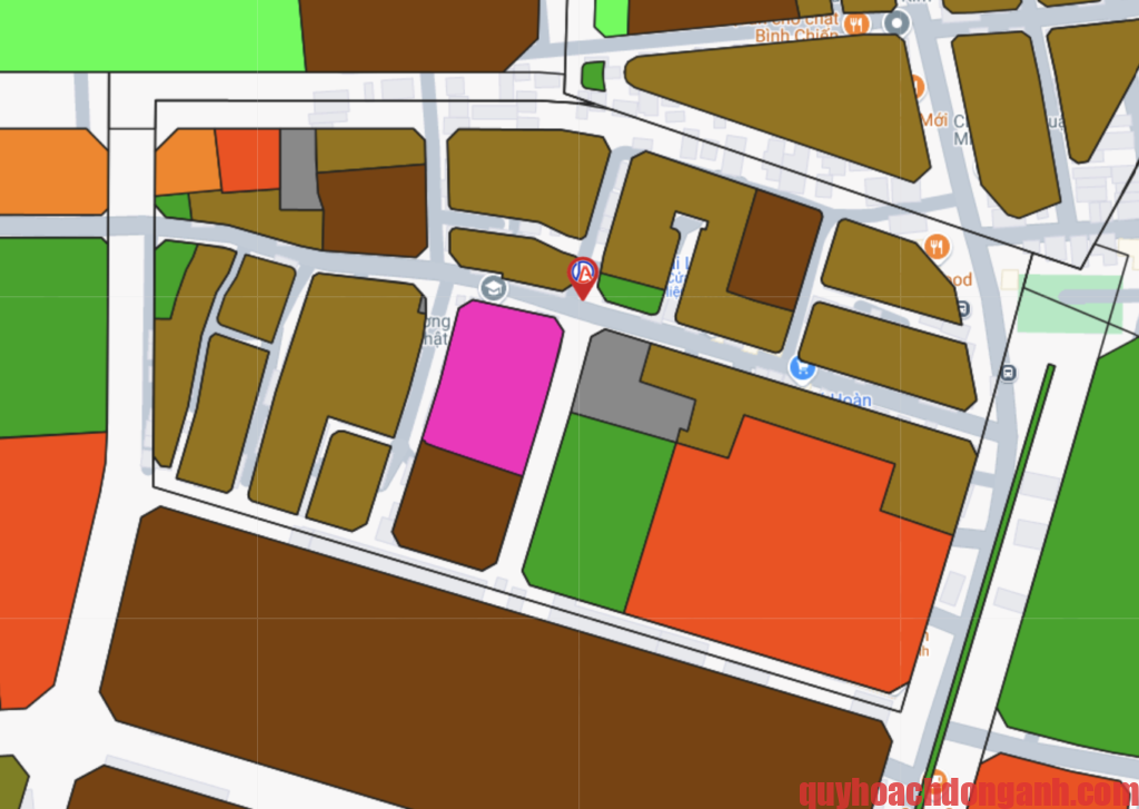 – Phía Đông trùng chỉ giới tuyến đường quy hoạch có mặt cắt ngang 40m.